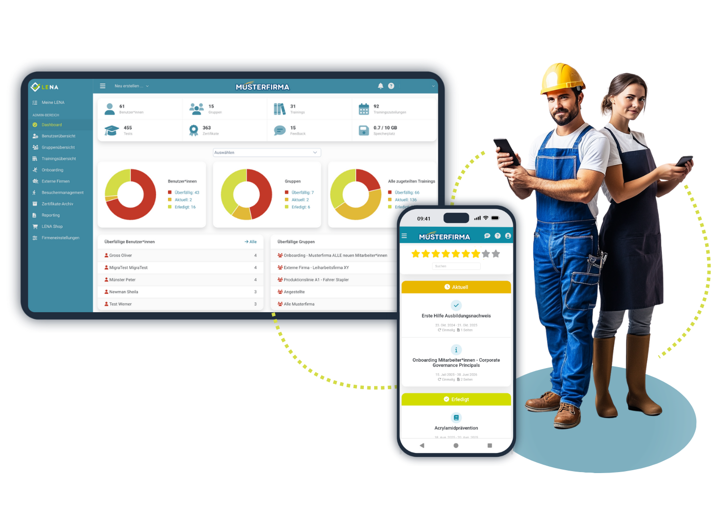Mit LENA sparen Sie sich den Verwaltungsaufwand rund ums Unterweisen. Aufsetzen, zurücklehnen, vergessen.